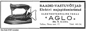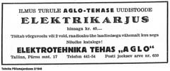 Aglo reklaam ajakirjas Oma Kodu 9/1937 ja ajakirjas Tehnika Põllumajanduses 2/1940.