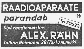 Kindlaid andmeid A. Rähni poolt raadioaparaatide valmistamise kohta on teada 1930. a-te I poolest: