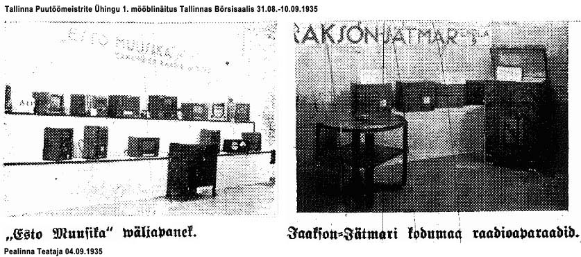 Esto-Muusika ja raadiotehase Jaakson & Jätmar väljapanekud mööblinäitusel Tallinnas 31.08.-10.09.1935.