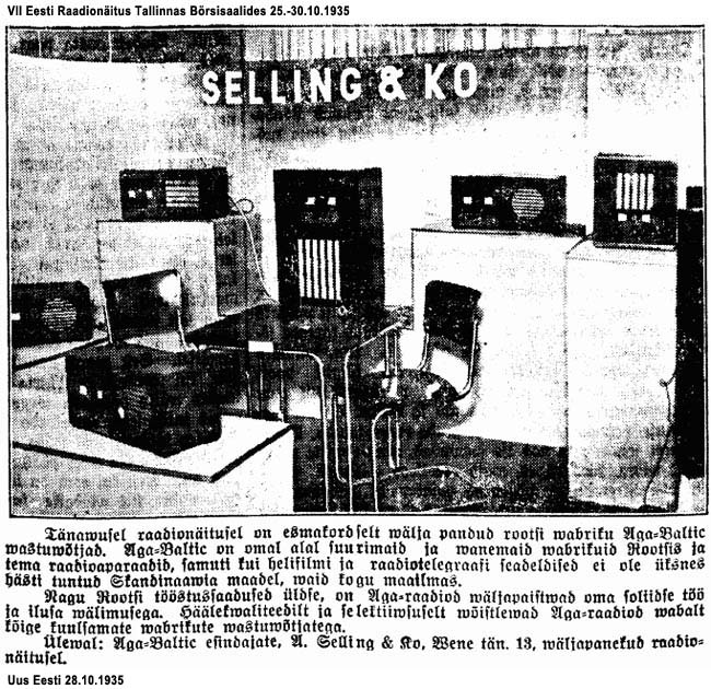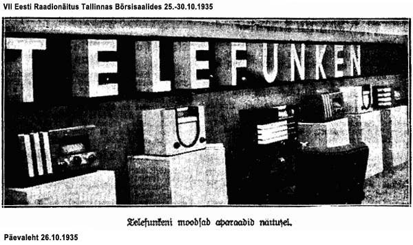 Välismaa raadioaparaate esindasid näitusel AS Eesti Philips (Philips), H. Oesterlein (Telefunken), R. Kuusner & Ko (VEF),