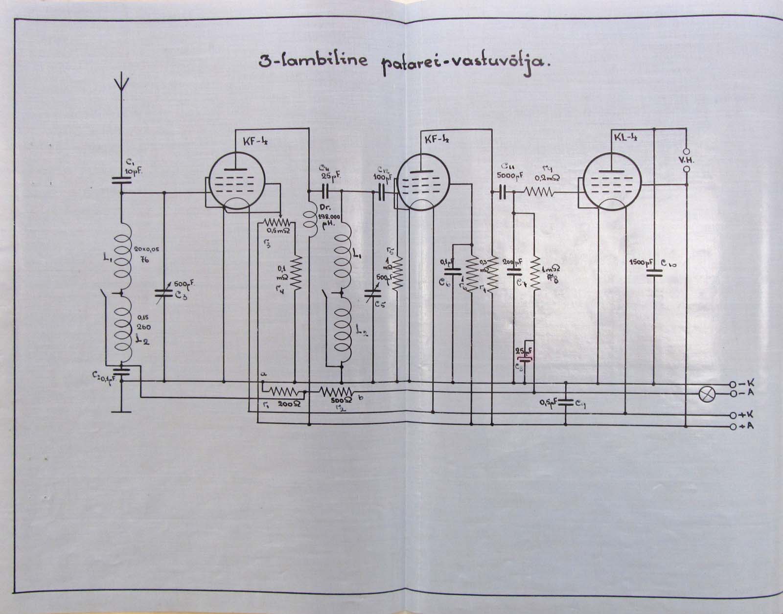 Kutseoskuse Ametis - 3-lambilise raadiovastuvõtja ehitamine 1939. a. septembris-oktoobris, vastuvõtja kirjeldus ja skeem ning