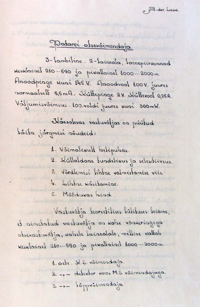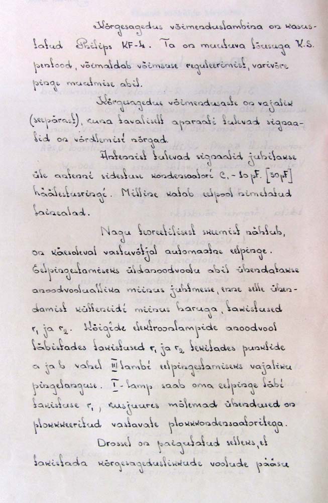 Alates 1936. a. maikuust AS Kapsi & Ko raadio service'is töötanud Aleksander Leoki eksami katsetöö Tallinna Tööstusliku