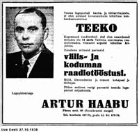 1930. a. suvel tutvustas Päevaleht A. Haabu konstrueeritud 4-lambilist võrgutoitega raadioaparaati, mis suutis väidetavalt