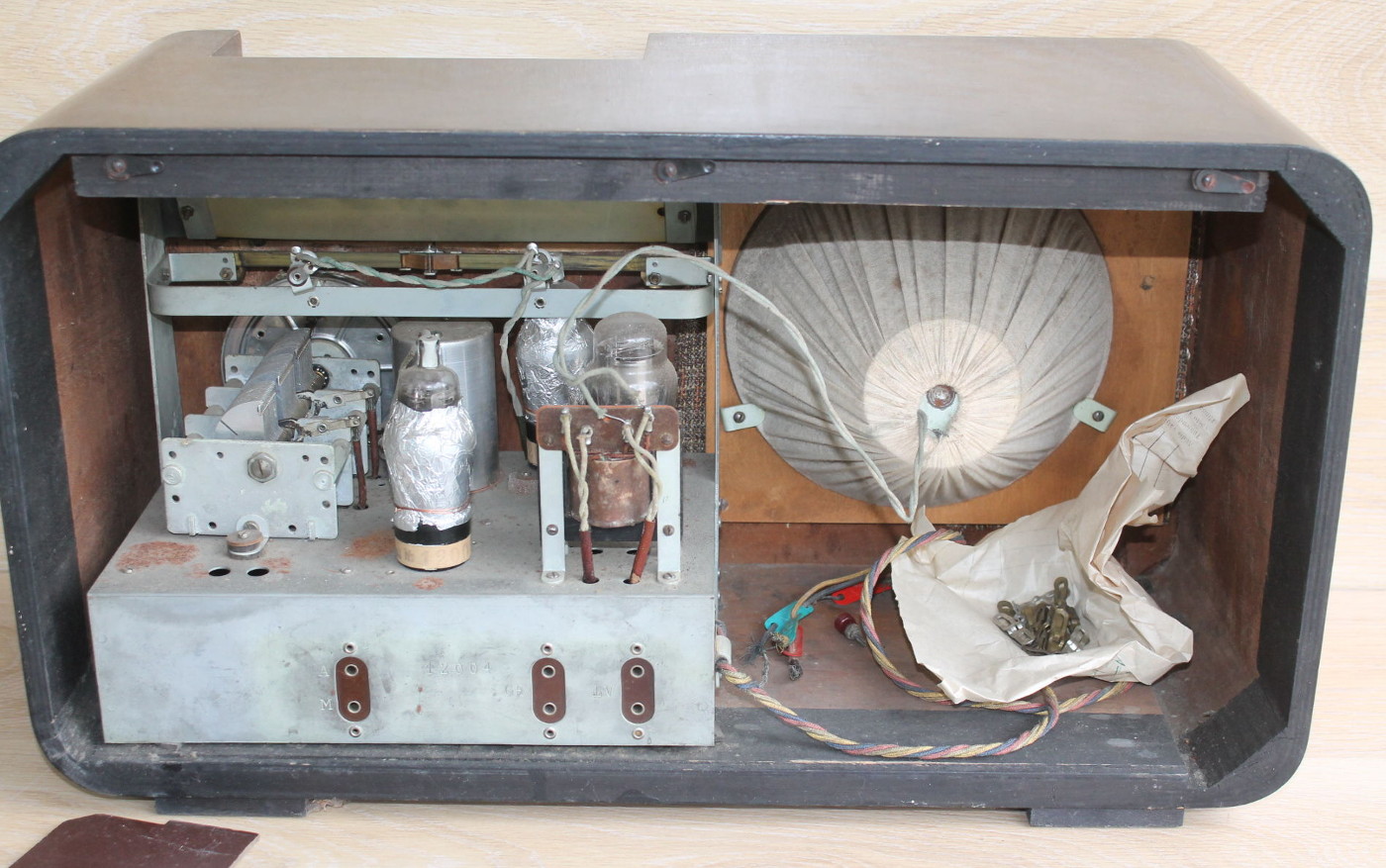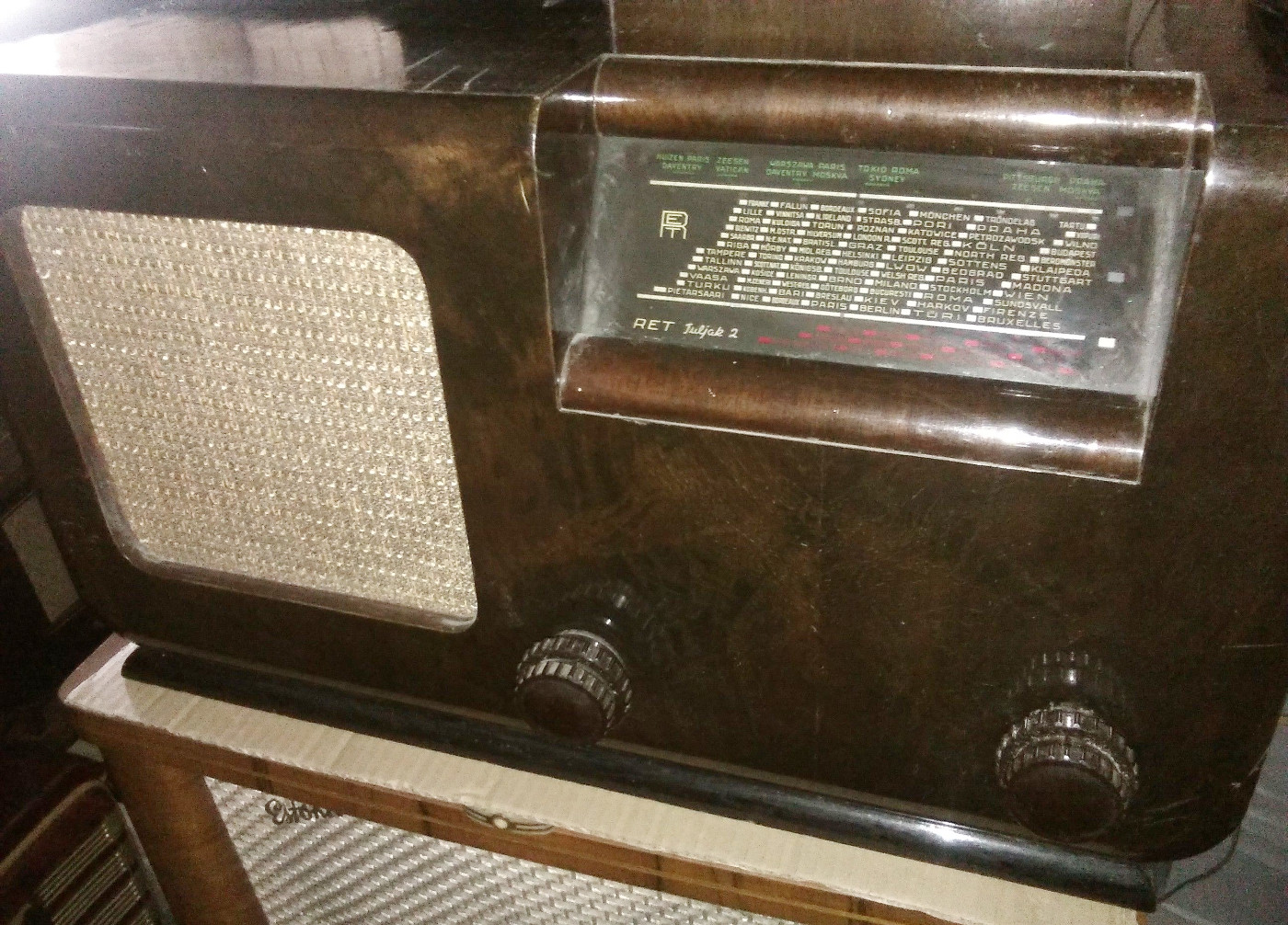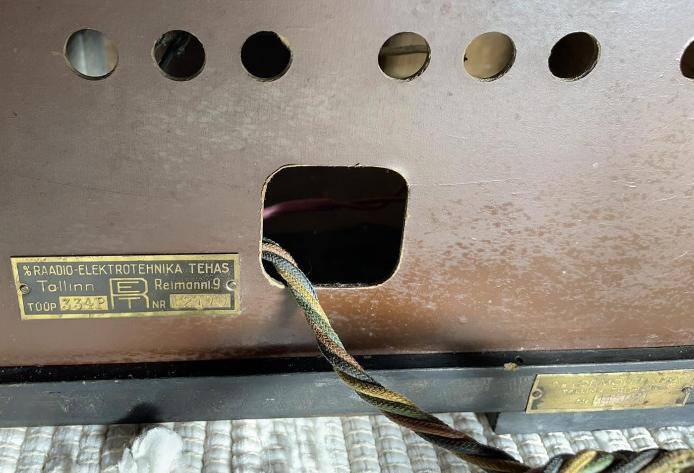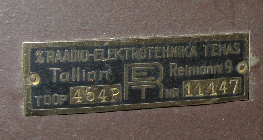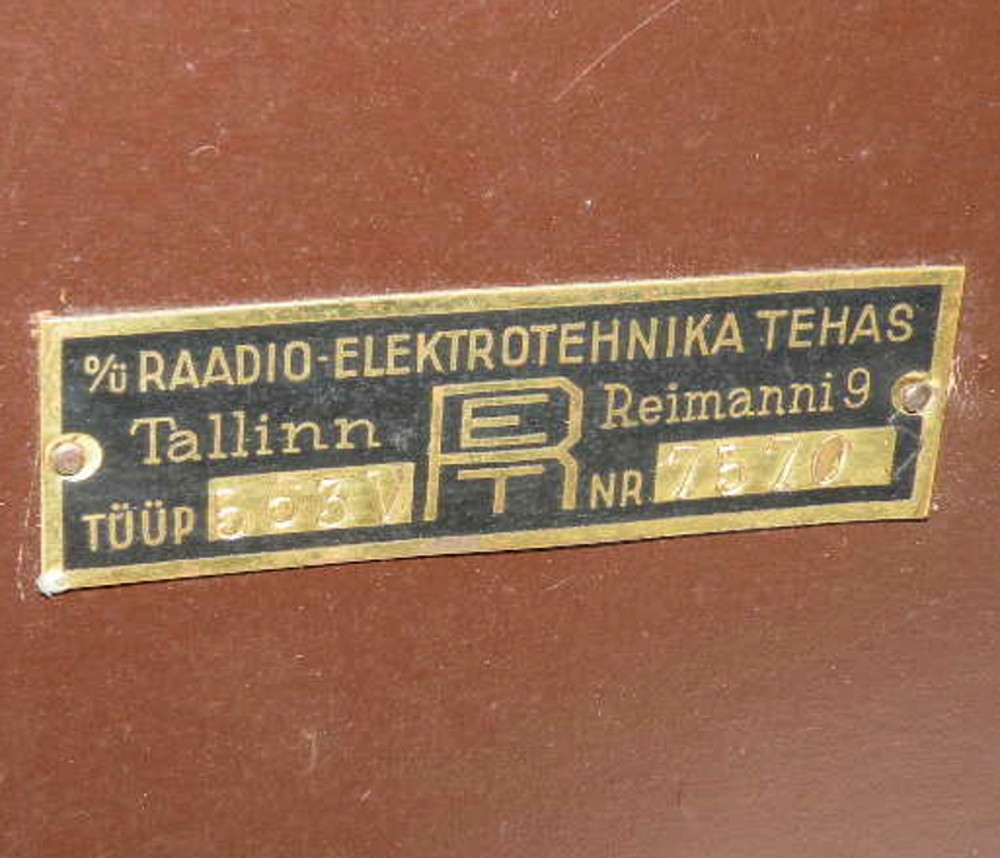 Säilinud väga originaalsena (sh lambid). Taha kleebitud raadiomaksu tasumise kviitung omaniku andmetega suvest 1941,