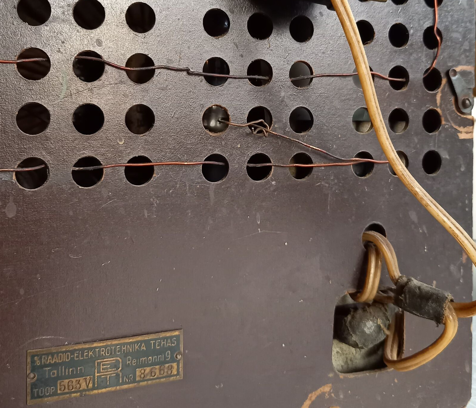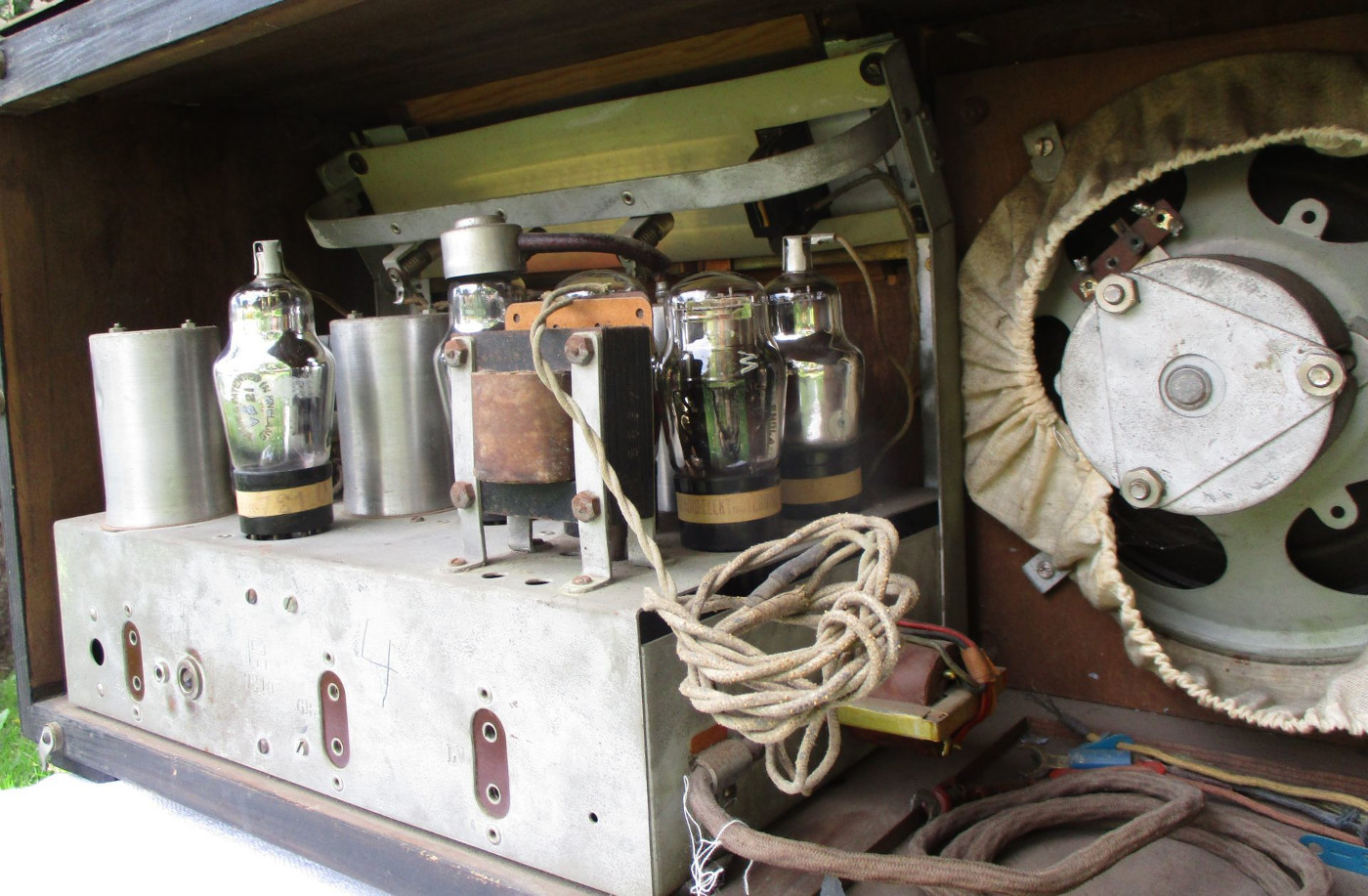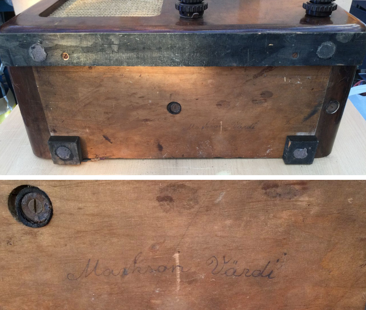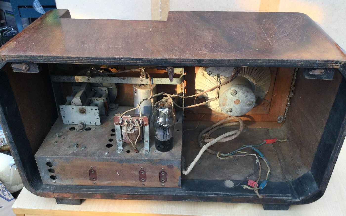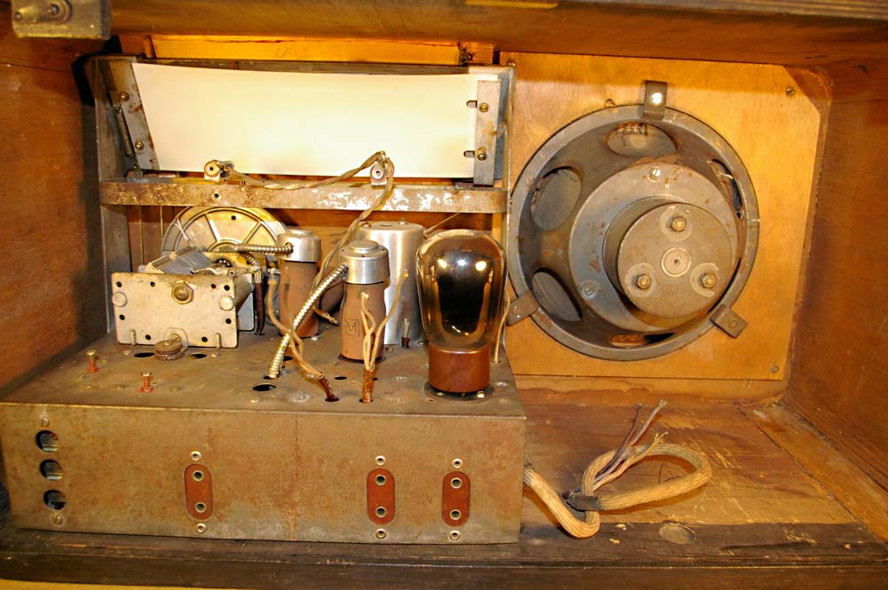 Säilinud väga originaalsena (sh lambid). Taha kleebitud raadiomaksu tasumise kviitung omaniku andmetega suvest 1941,
