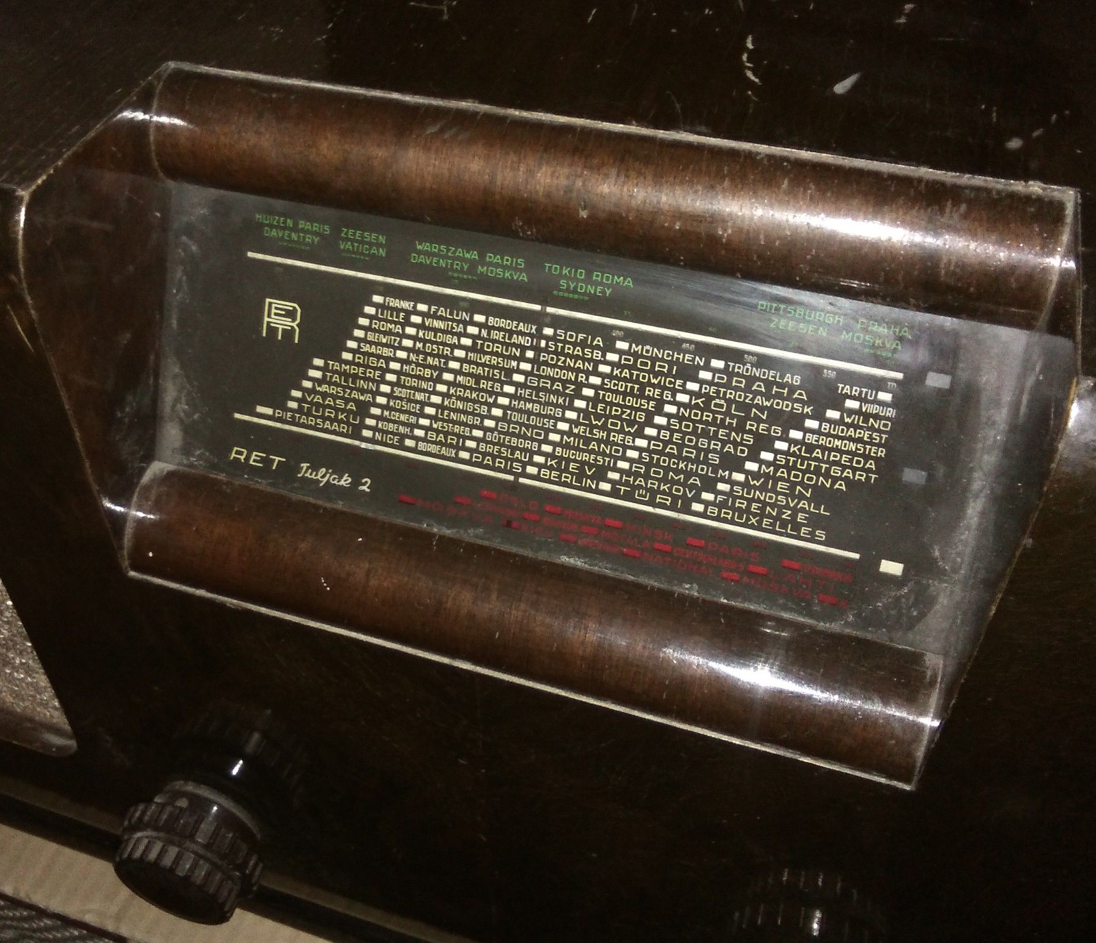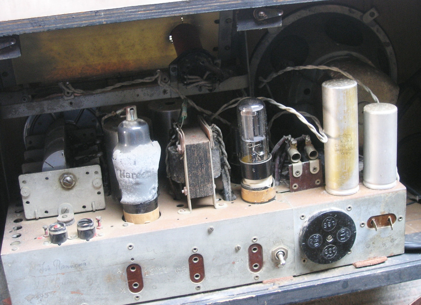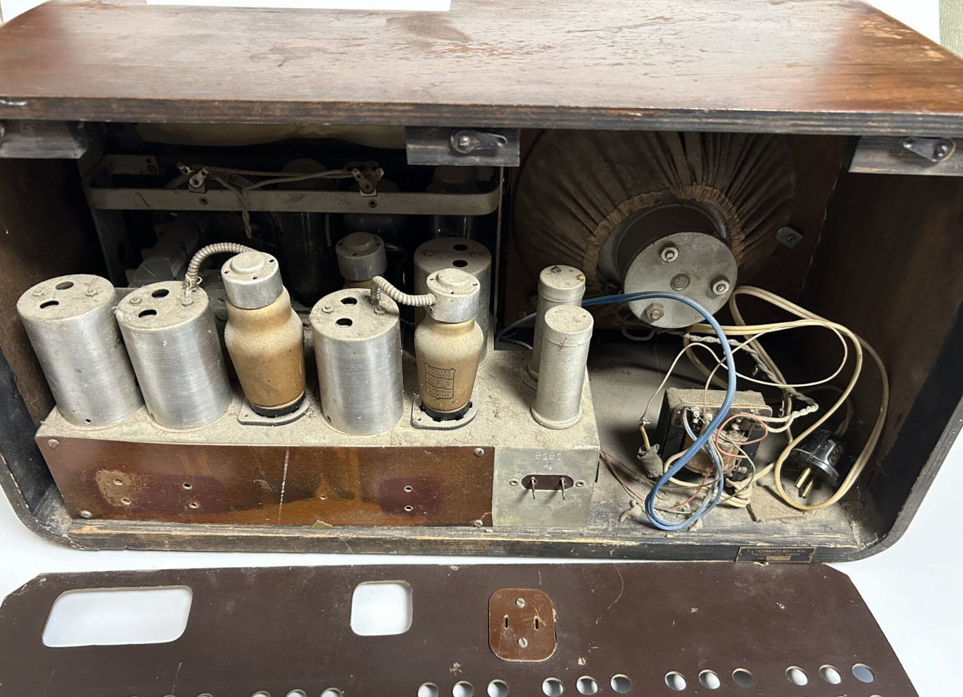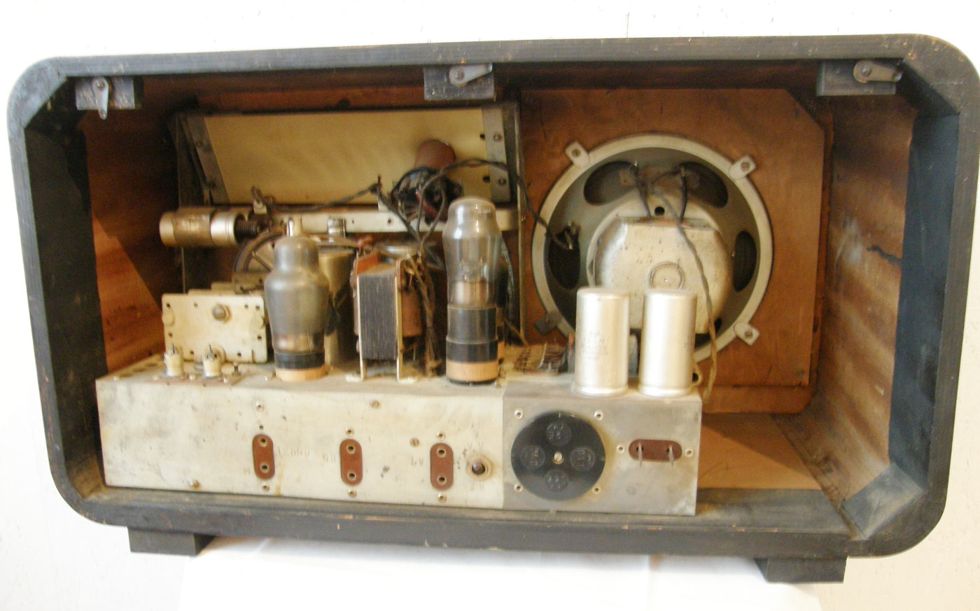 Säilinud väga originaalsena (sh lambid). Taha kleebitud raadiomaksu tasumise kviitung omaniku andmetega suvest 1941,