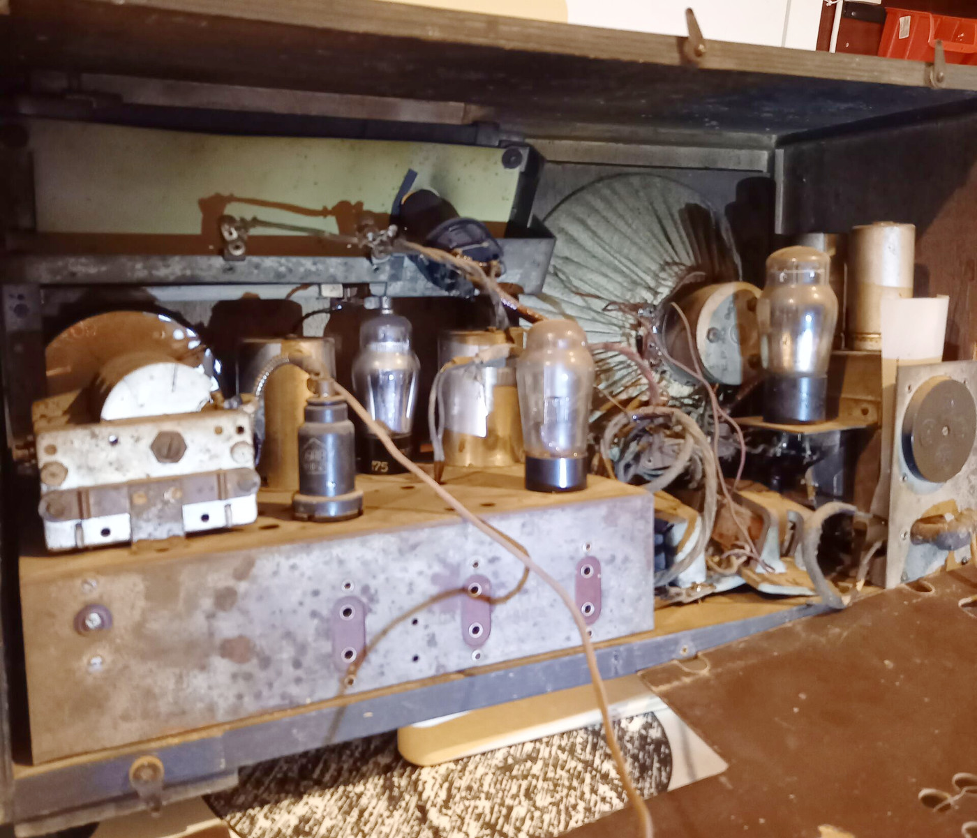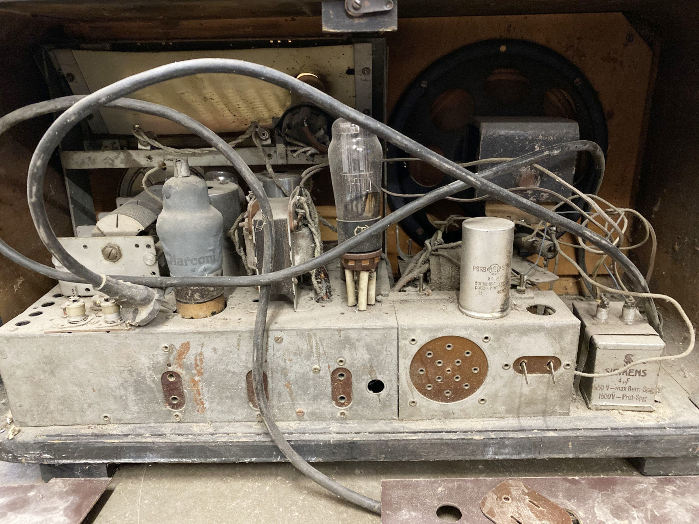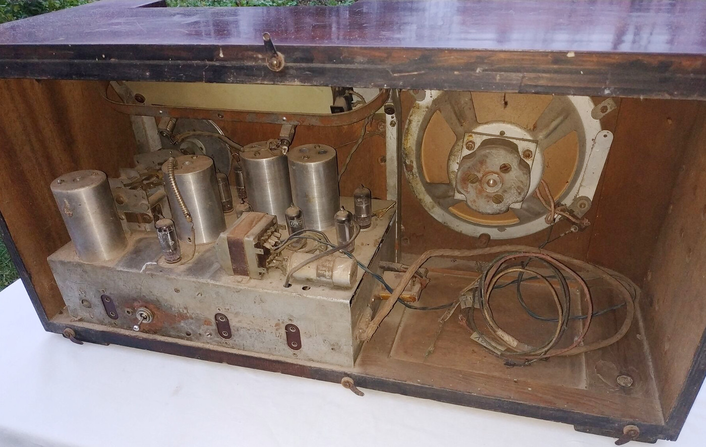 Säilinud osalt väga originaalsena (sh lambid, pakkekast), kuid puudu kõlar ja nupud.