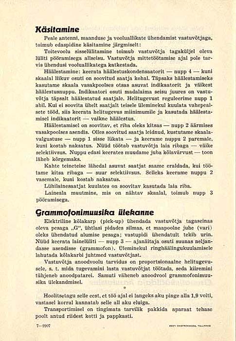 | ILMATAR 2 kasutusjuhend Eesti Ringhäälingumuuseumi kogust.