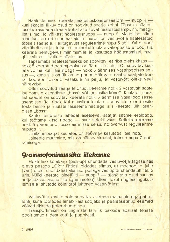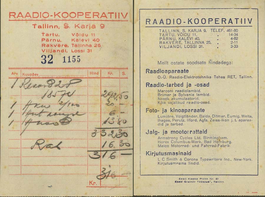 Alumine originaal kataloogifoto Eesti Ringhäälingumuuseumi