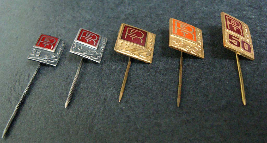 Punase-RETi tehase juubelimärgid. Kokku 5 märki, 1960-1985 (välja arvatud 1970).