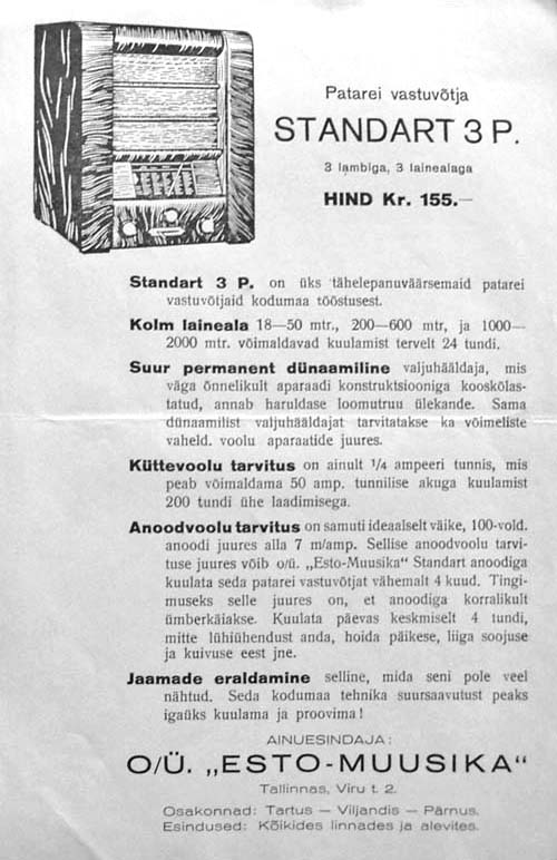 Mudelit "Standard 4" kirjeldatakse reklaamartiklis ajalehes Vaba Maa 17.10.1936 lk 7.