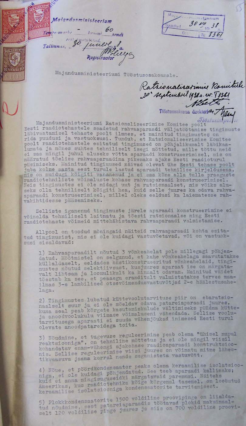 tulevane rahvaaparaat vastama pidi. Enamik raadiotööstureid polnud Ratsionaliseerimise Komitee esitatud tingimustega rahul.