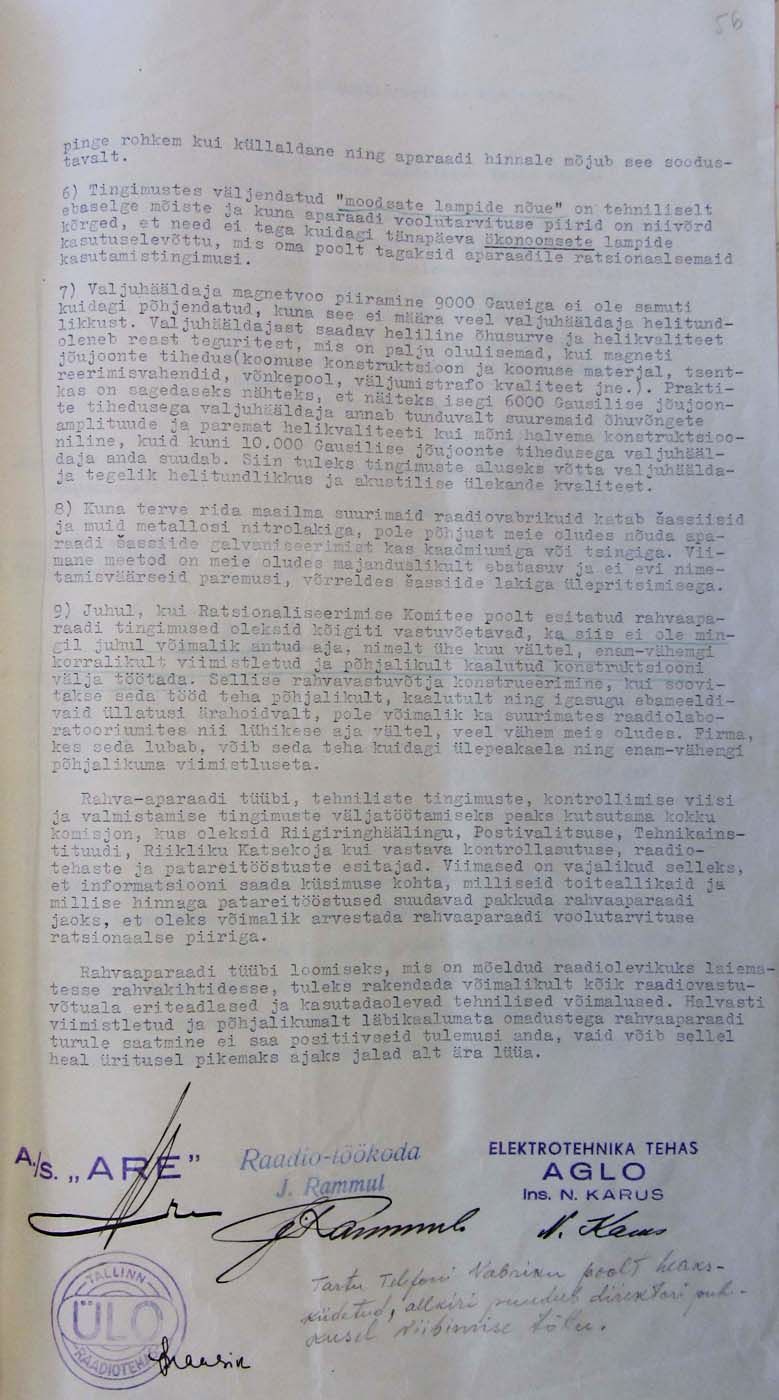 valmistamiseks vajalike materjalide, eriti lampide sissevedu. Olgu muuseas märgitud, et Riigi Ringhääling on rahvaaparaatidele