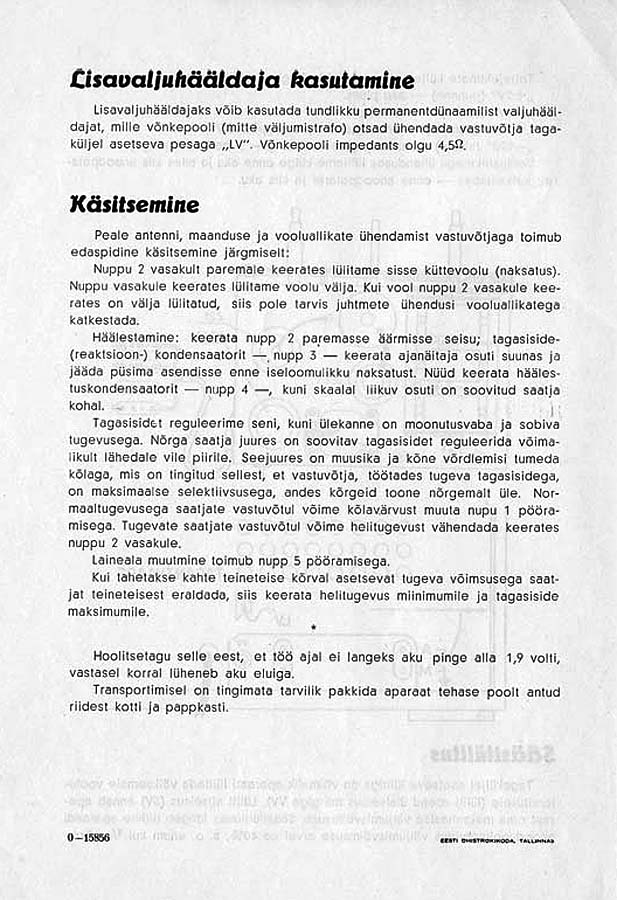 olla üsna madala tundlikkusega. Eesti oludes aga sooviti kuulata ka välismaiseid saatejaamu, aparaat tuli ehitada tundlikum ja