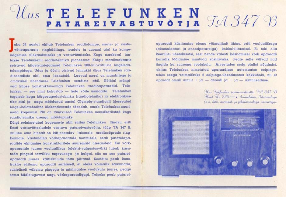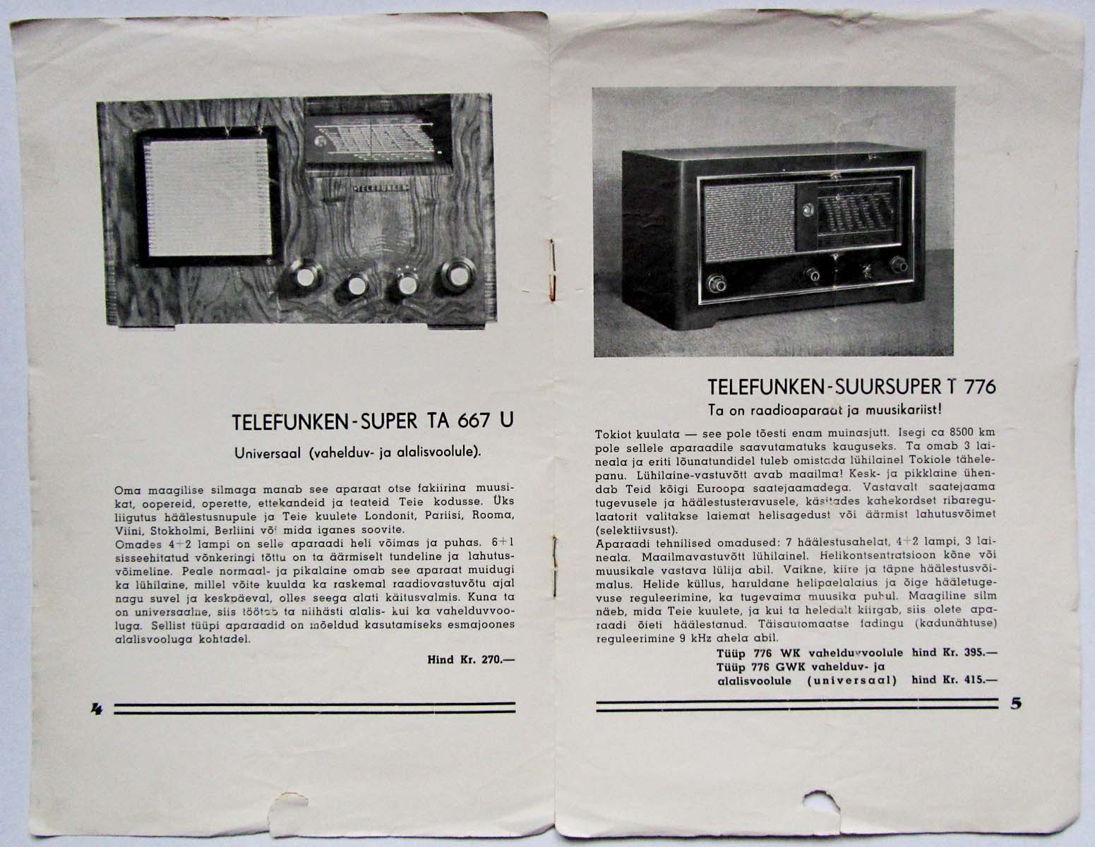 | TELEFUNKEN TA 347 B ja TA 667 U 1937/38 - valmistaja OÜ RET |