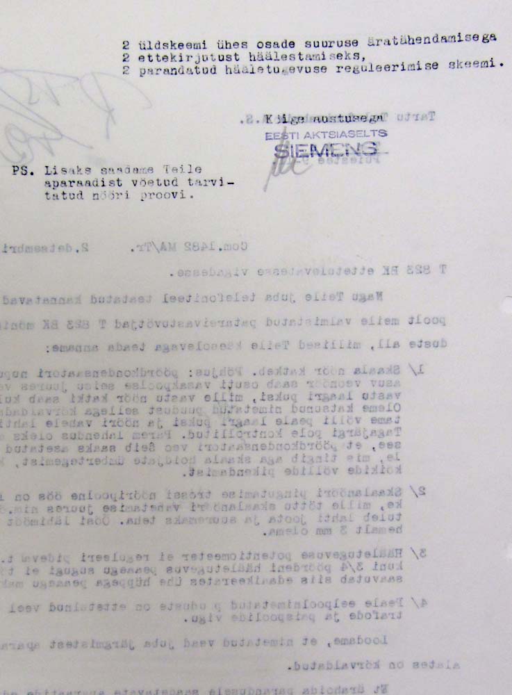 Eesti AS Siemensi kirjavahetuses leidub ühe aparaadi seerianumber: