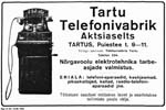 *AS Tartu Telefonivabriku reklaam /Välis Eesti 11-12/1939/.
